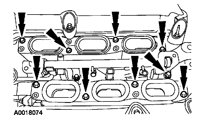 7. Remove the bolts and upper intake manifold.