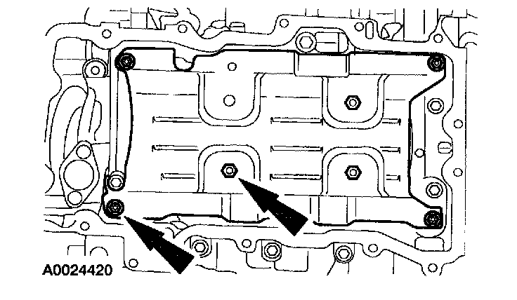 33. Remove the nuts and the oil pan baffle.