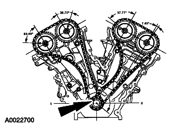 ^ Verify that the camshafts are correctly located. If not, rotate the crankshaft one additional turn and re-check.