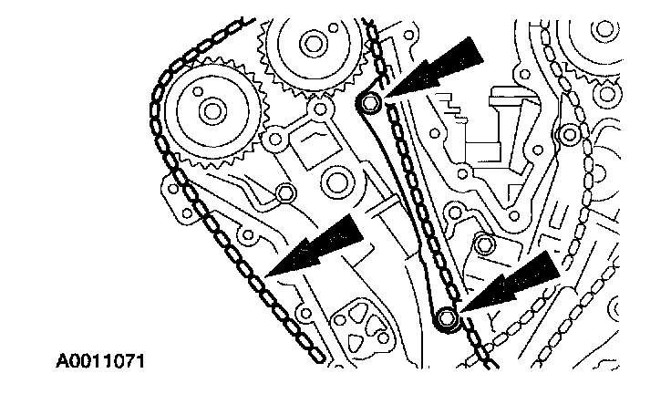 47. Remove the LH timing chain and tensioner arm.