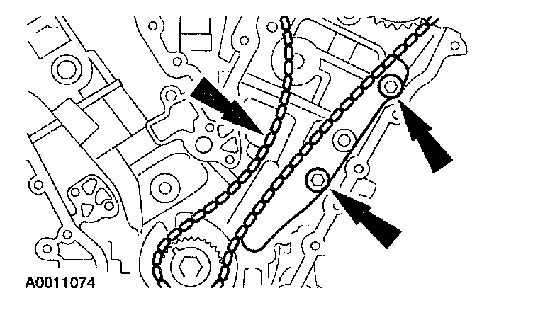 44. Remove the bolts, RH timing chain guide and the timing chain.
