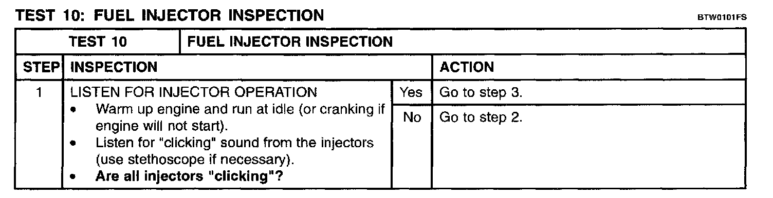 Test 10: Fuel Injector Inspection