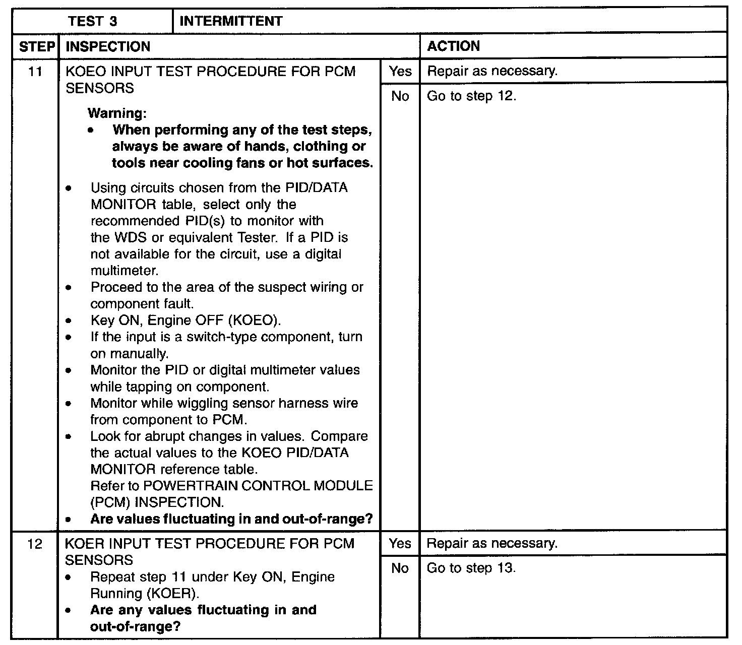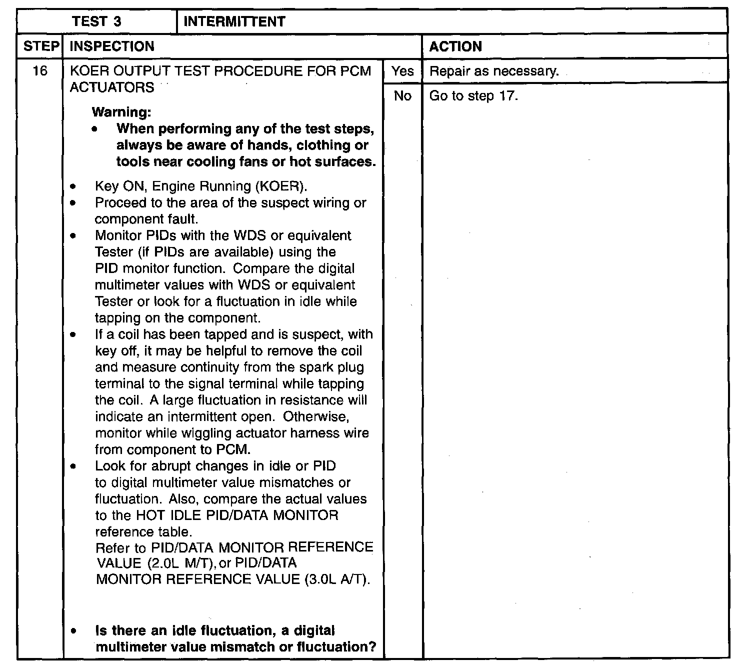 NOTE: PIDs selected from the PID/DATA MONITOR table will display commanded values only. Digital multimeter measurements will display actual values.