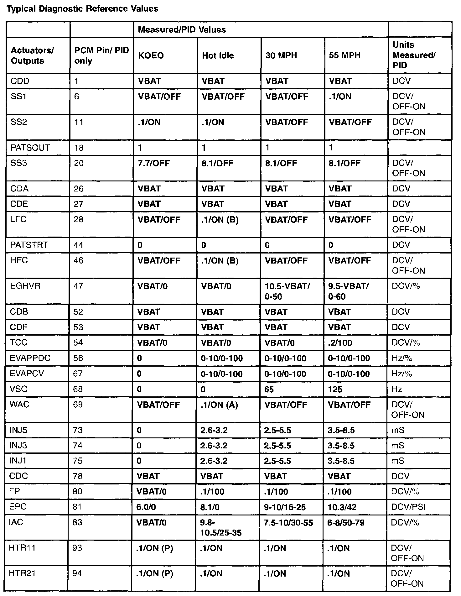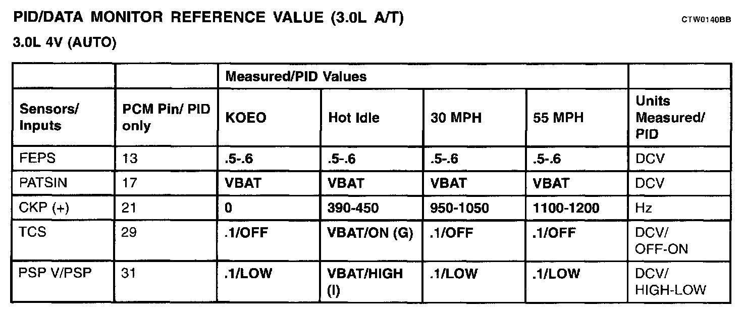 PID/Data Monitor Reference Value (3.0L A/T) Part 1:
