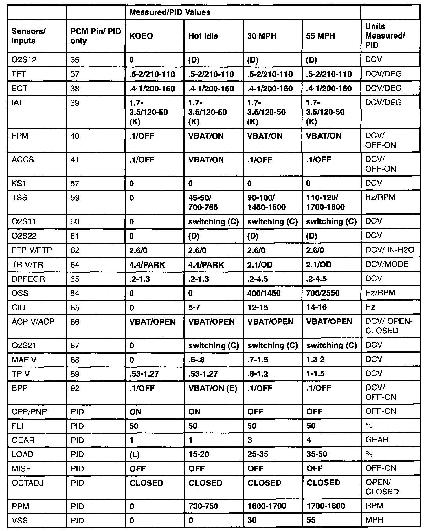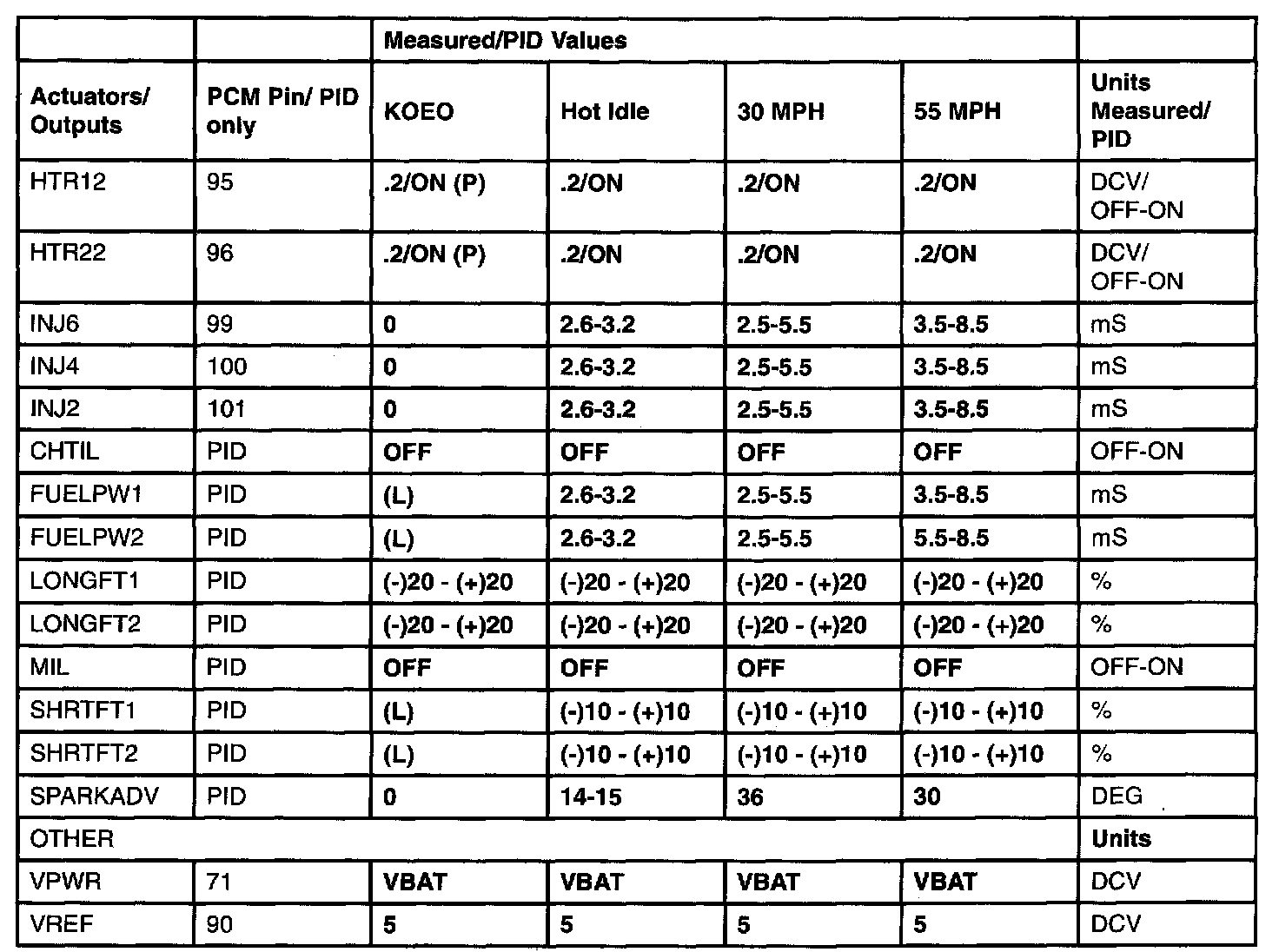 PID/Data Monitor Reference Value (3.0L A/T) Part 2: