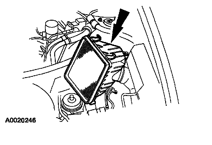 ^ Before installing the battery tray check the vent tube hose for any obstructions, kinks, or incorrect routing position.