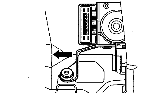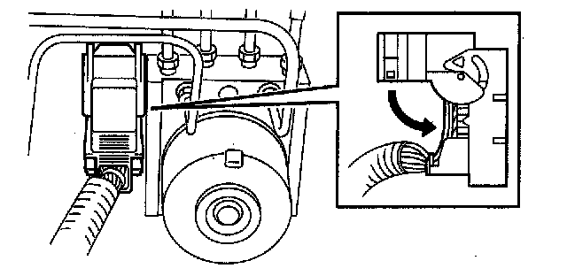 1. As shown in the figure, move the bracket in the direction of the arrow and remove the ABS HU/CM component and bracket from the body