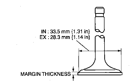 VALVE, VALVE GUIDE INSPECTION1. Measure the valve head margin thickness of each valve.