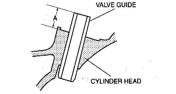 6. Measure the protrusion height (dimension A) of each valve guide without lower valve spring seat.