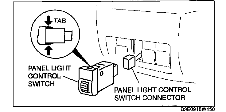PANEL LIGHT CONTROL SWITCH REMOVAL/INSTALLATION1. Disconnect the negative battery cable.