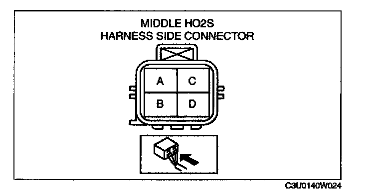 2. Measure the middle HO2S resistance between terminals C and D.