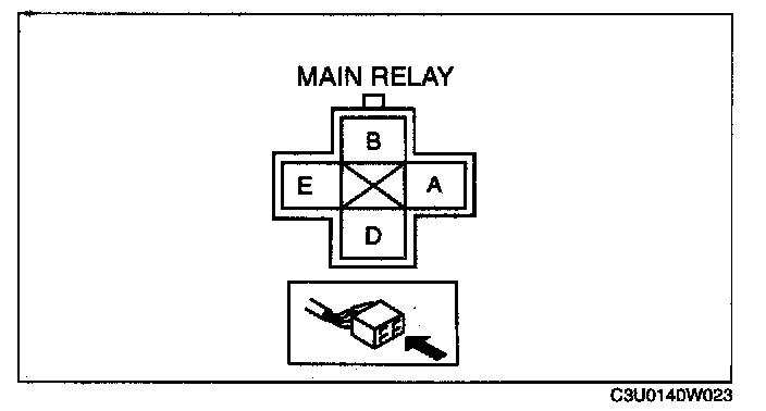 - HO2S terminal C and main relay terminal E