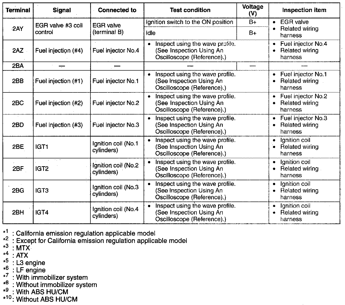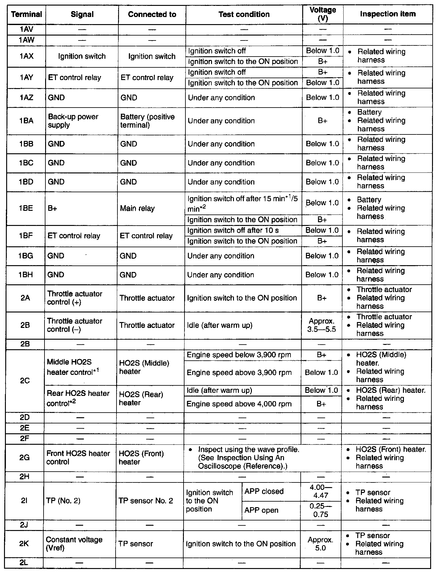 PCM Terminal Voltage Table (Reference) - Terminals (2AY - 2BH):