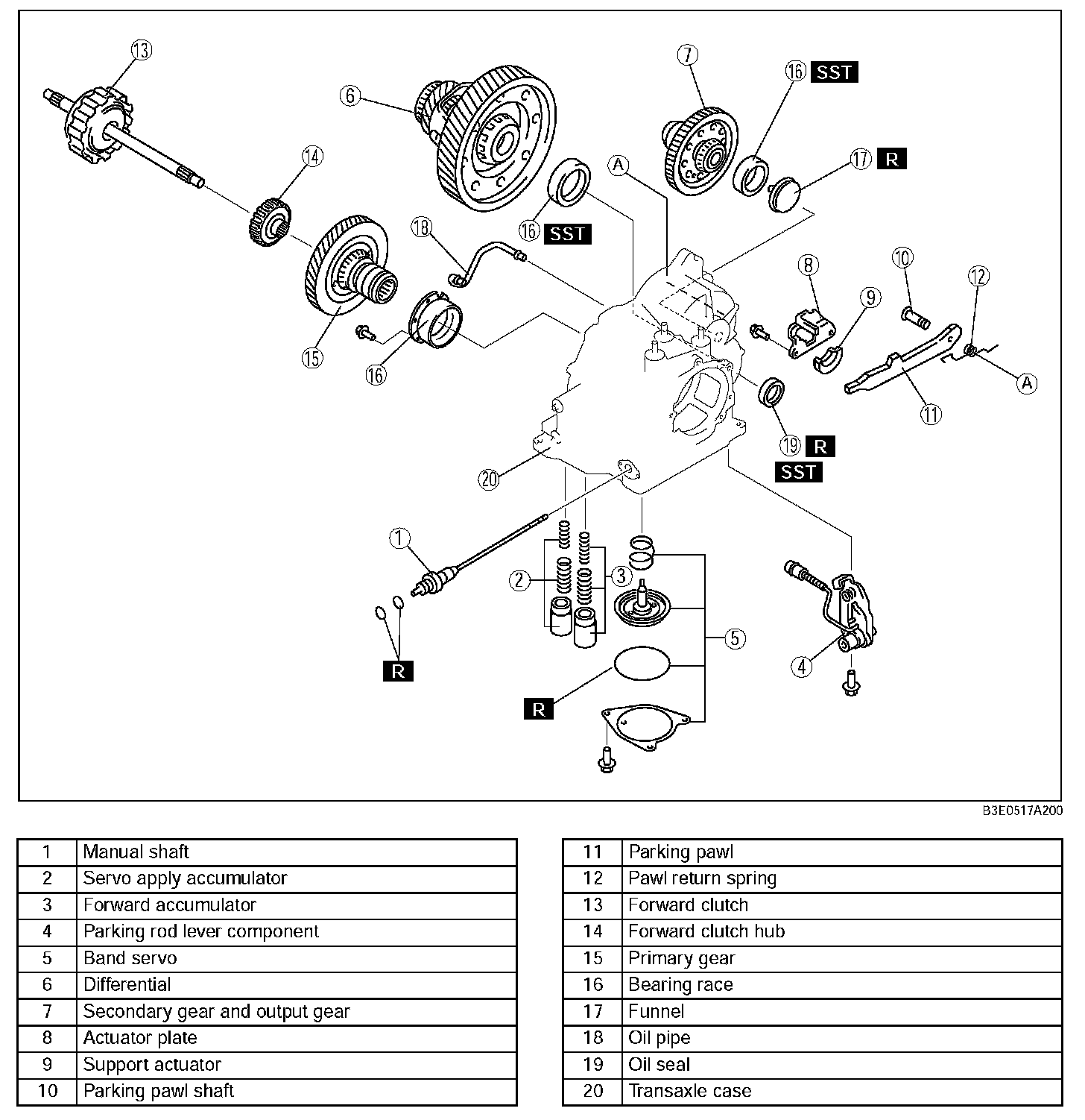 ^ Clean the transaxle exterior thoroughly with a steam cleaner or cleaning solvents before removal.