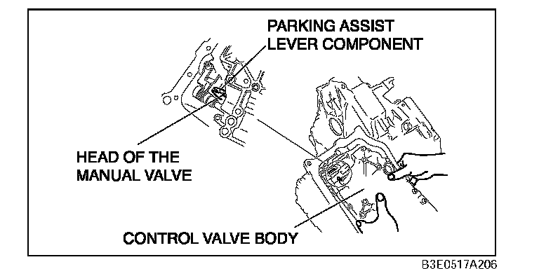 Note: Remove the control valve body by removing the head of the manual valve from the port of the parking assist lever component.