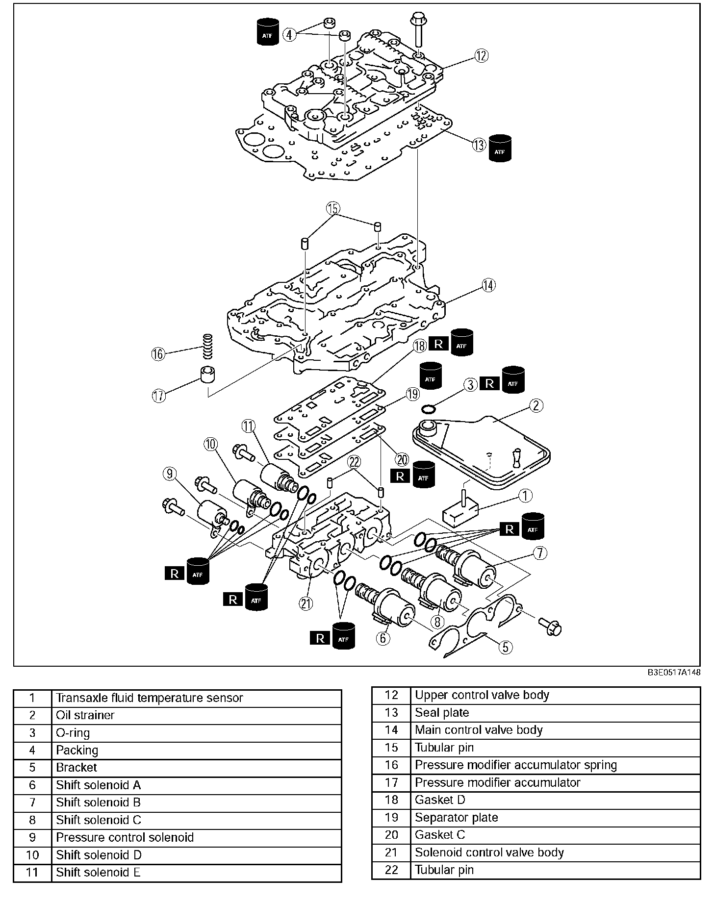 Control Valve Body DisassemblyCaution: Denting or scratching these components will reduce the ability of the transaxle to shift properly. When handling these components or the valve body that contains them, be careful not to drop or hit them.