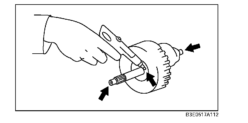 2) Secure the forward clutch by lightly pressing down with a press or similar tool.