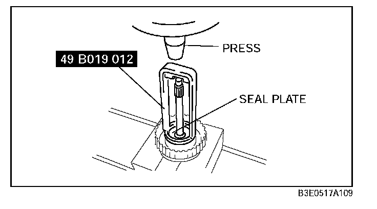 Caution: Depress the seal plate only enough to remove the snap ring. Overpressing will damage the seal plate assembly edges.