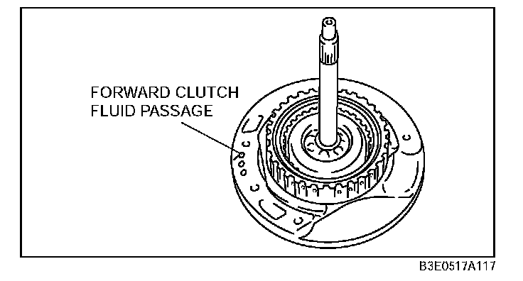 2) Inspect the forward clutch operation by applying compressed air as shown.