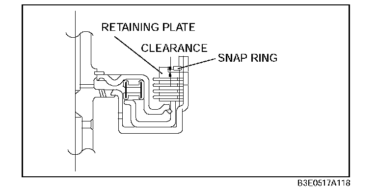 9) Install the selected snap ring and perform steps (2) to (7) again. Verify that the calculated value satisfies the clearance specification.