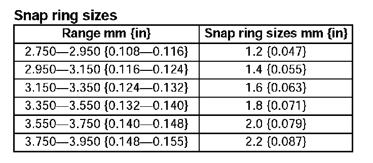 8) Add the thickness to the average value calculated in step (7), and select the snap ring whose range includes the value.