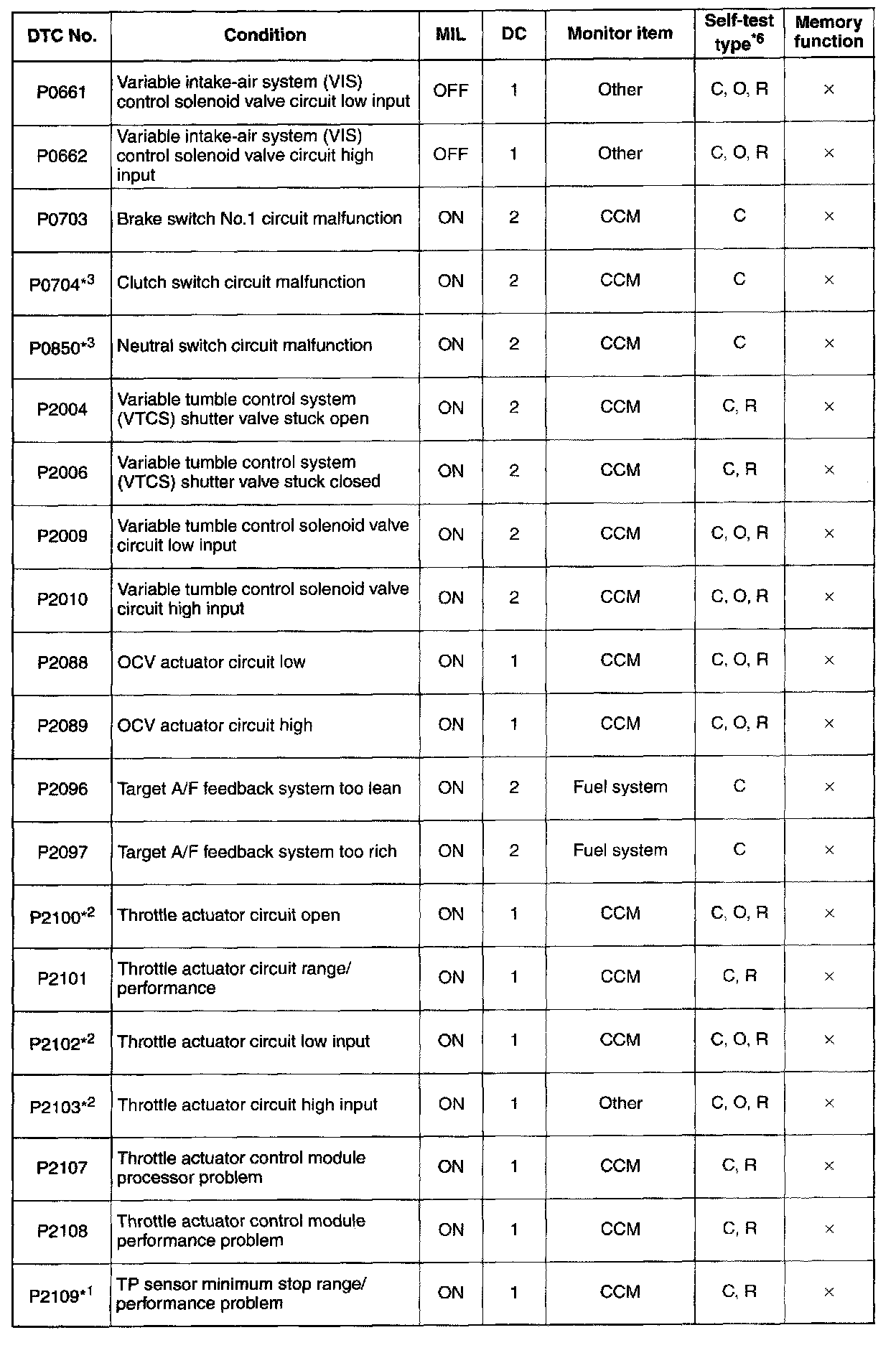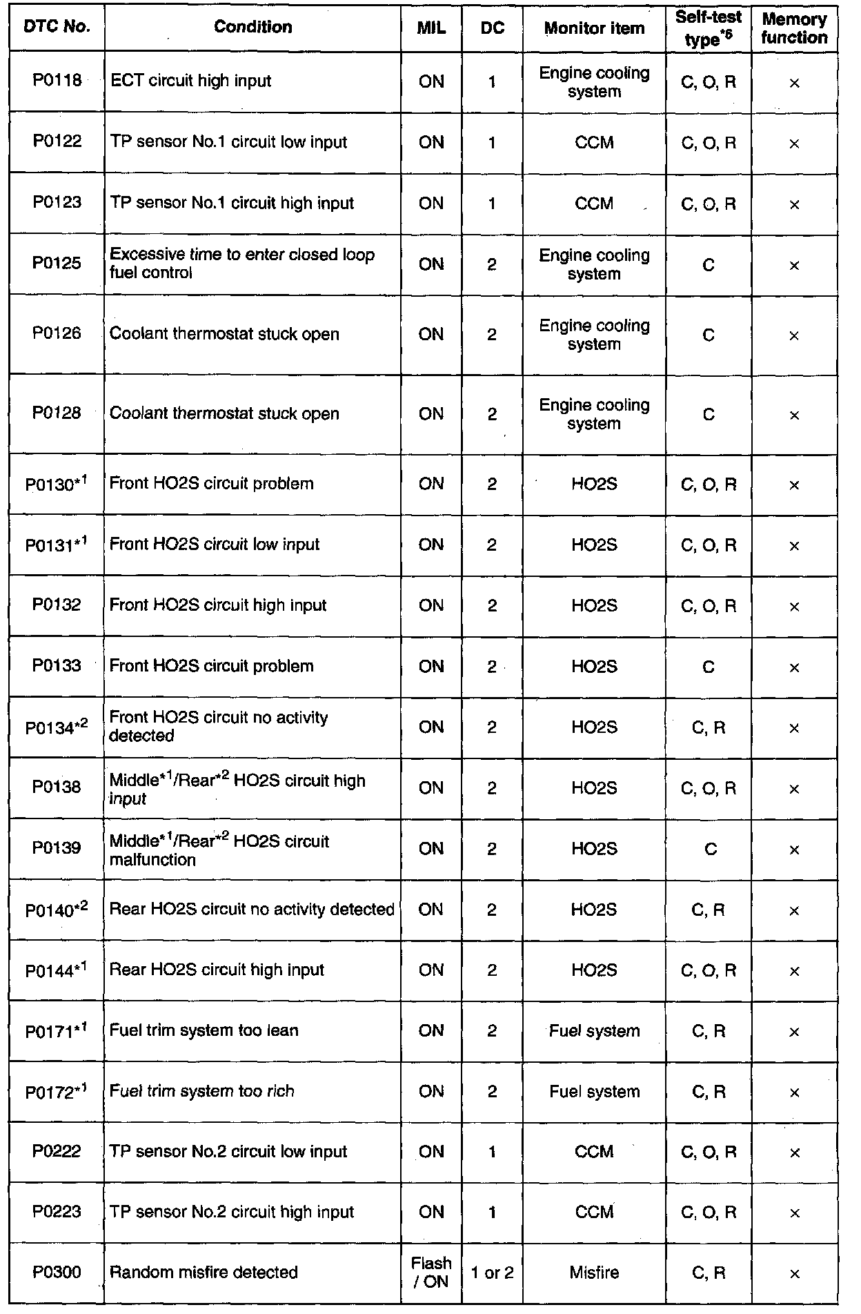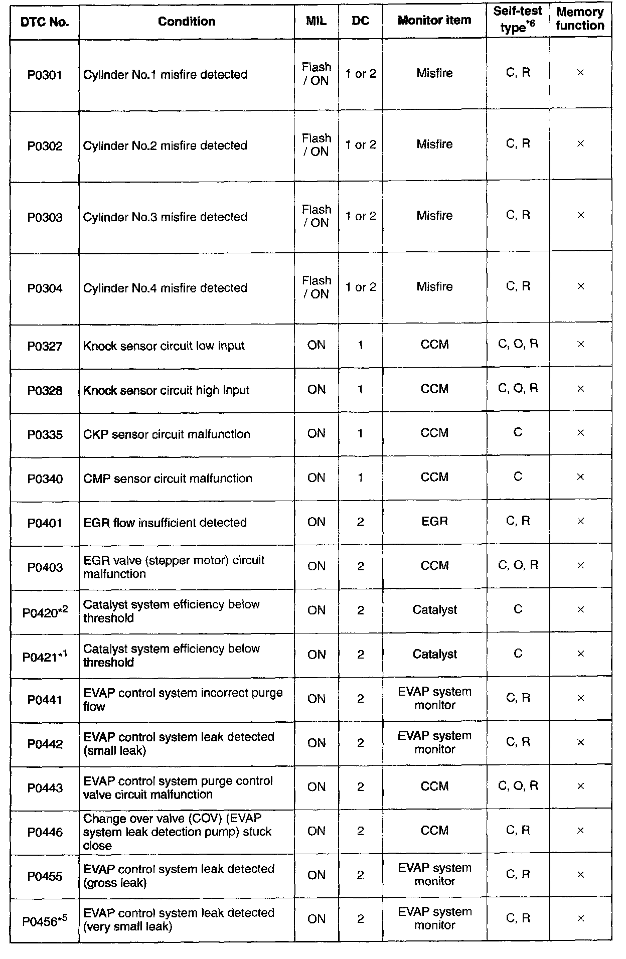 DTC P0301 - P0456: