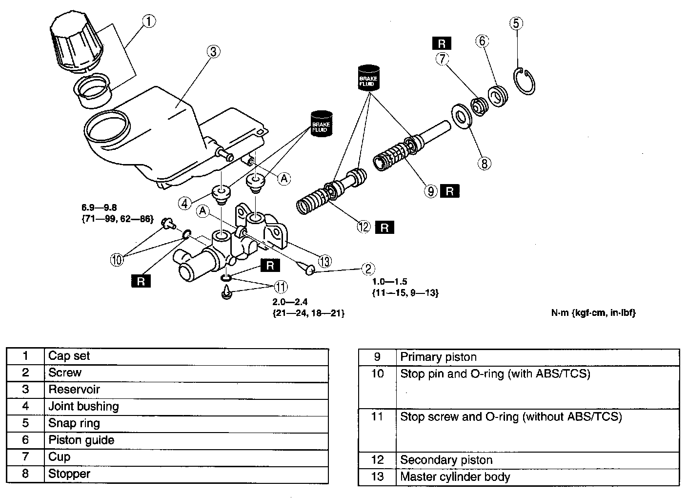 Tightening torque 6.9 - 9.8 Nm (71 - 99 kgf-cm, 62 - 86 inch lbs.)