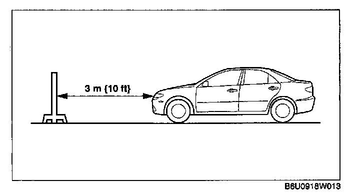 4. Position the vehicle 3 m {10 ft} in front of a white screen.