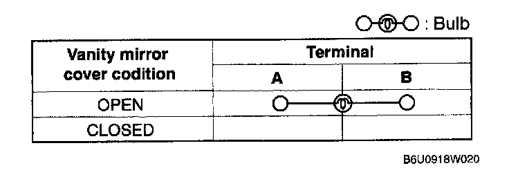 Inspect for continuity between the vanity mirror illumination terminals using an ohmmeter.