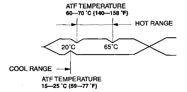 ^ If necessary, inspect the ATF before warming up the engine. In this case, use the cool range. 15 - 25°C (59 - 77°F)