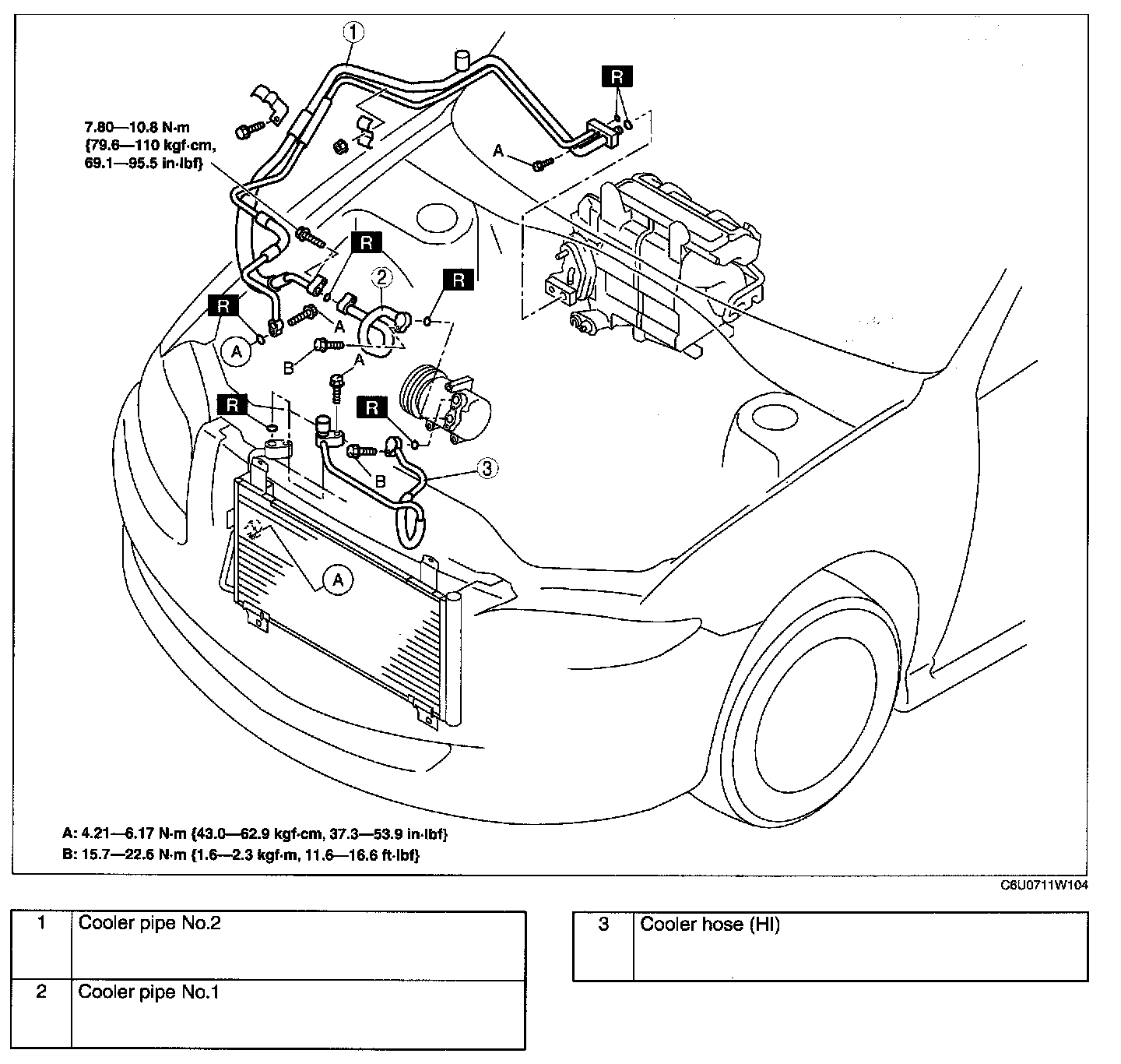 7. Remove in the order indicated in the table. Do not allow compressor oil to spill.