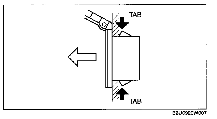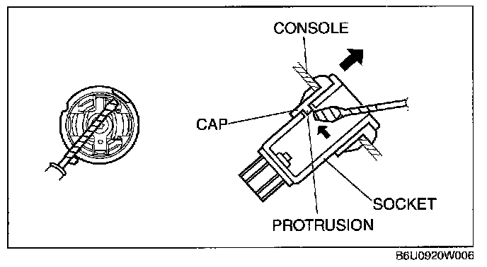1. Remove the socket by pushing on the protrusion with a tape-wrapped flathead screwdriver insert through the socket hole, and pulling the socket toward you.