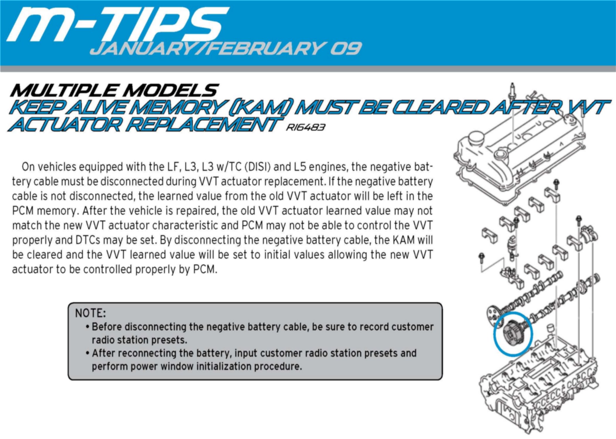 Computers/Controls KAM Memory Clearing After VVT R & R