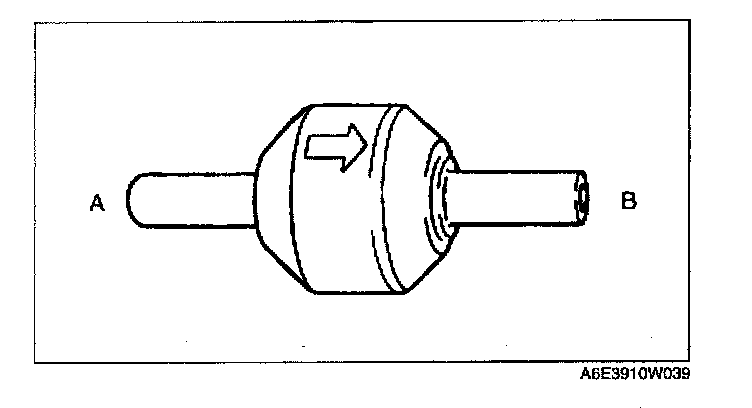 VARIABLE AIR DUCT (VAD) CHECK VALVE (ONE-WAY) INSPECTION1. Remove the VAD check valve (one-way). (See INTAKE AIR SYSTEM REMOVAL/INSTALLATION.)