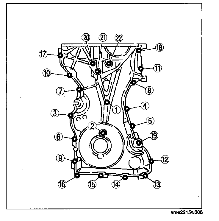 Tighten the crankshaft pulley lock bolt in the order shown following two steps using the SST (49 D032 316).