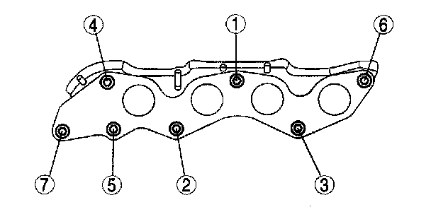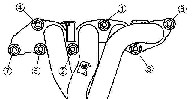 Tighten the exhaust manifold installation nuts in the order shown.
