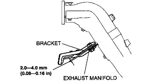Verify that the gap between the exhaust manifold and the bracket is 2.0 - 4.0 mm (0.08 - 0.16 inch).