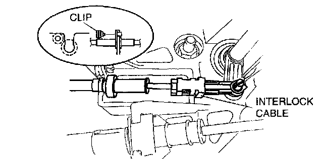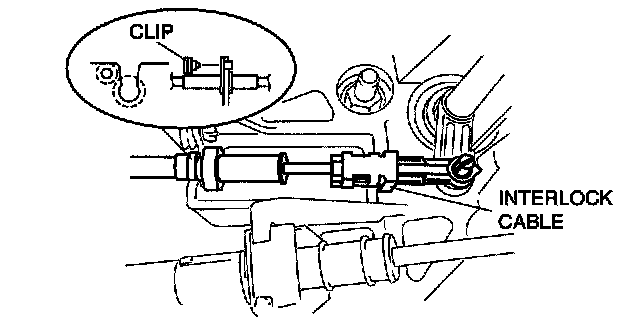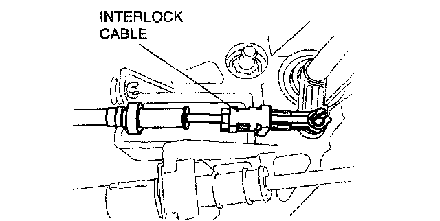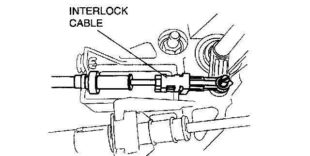 16. Install the interlock cable end to the interlock link on the selector lever.