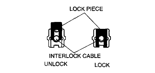 ^ Applying a load to the interlock cable while pressing the lock piece in can affect the lock unit operation.