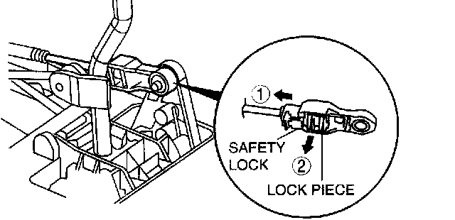 3. Unlock the lock piece of the select cable (shift lever side) in the order shown in the figure.