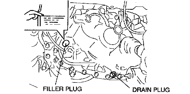 3. Verify that the oil is near the brim of the plug port. If the oil level is low, add the specified amount and type of oil through the filler plug hole.