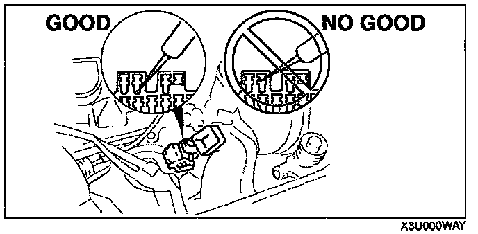 CAUTION: To prevent damage to the terminal, wrap a thin wire around the tester probe before inserting into terminal.