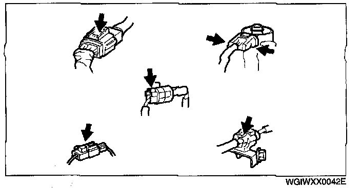 - When disconnecting connector, grasp the connectors, not the wires.