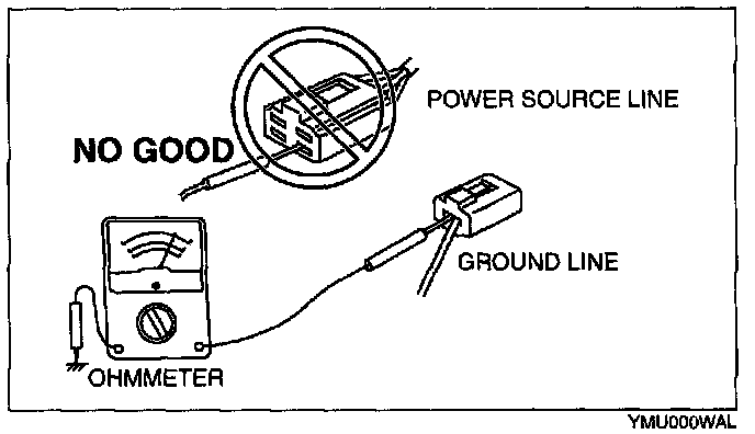 CAUTION: Do not connect the ohmmeter to any circuit where voltage is applied. This will damage the ohmmeter.