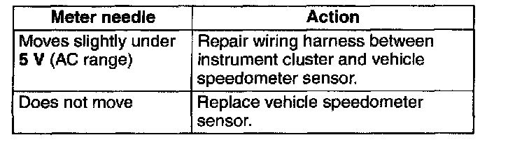 2. Measure voltage (AC range) between terminals of the vehicle speedometer sensor while the gear is turning.