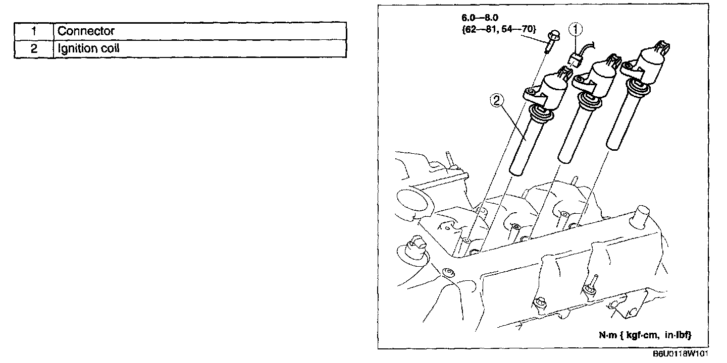 IGNITION COIL REMOVAL/INSTALLATION1. Disconnect the negative battery cable.