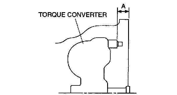 6. To ensure that the torque converter is installed accurately, measure distance A between the end of the torque converter and the end of the converter housing.