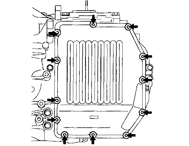 10. Clean sealant and oil off the contact surface of the transaxle case with the control valve body cover and the bolt holes.