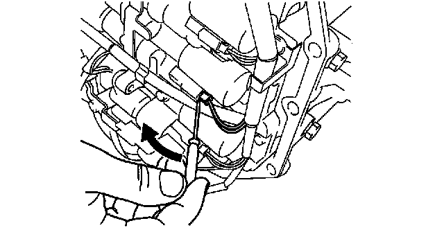 17. Remove the VSS connector and input/turbine speed sensor connector from the solenoid clamp.