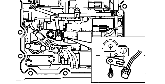 7. Install the TFT sensor with the lock plate and a bolt to the control valve body component as shown in the figure.